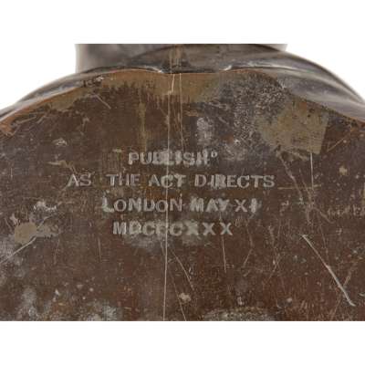 bronze, dark brown patina, inscribed SIR WALTER SCOTT BART/ S. PARKER FECIT XII ARGYLL PLACE/ PUBLISHD. AS THE ACT DIRECTS/ LONDON MAY XI/ MDCCCXXX/ SAML. JOSEPH SCULPSIT