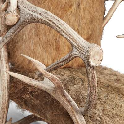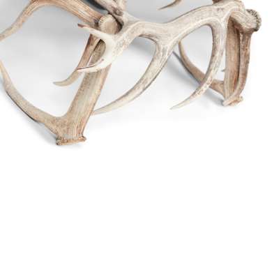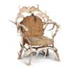 the antlers with scrimshaw scenes of stags, deer, boars, and a grouse, the seat and back covered with boar fur