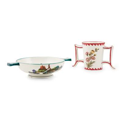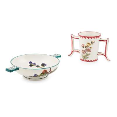 impressed WEMYSS, 12cm high; together with a further 'BRAMBLES' QUAICH, impressed WEMYSS WARE/ R. H. & S., printed retailer's stamp T. GOODE & CO., 27cm diameter