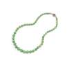 Composed of a single strand of graduated 11.1-6.8mm jadeite jade beads, the clasp collet-set with a cabochon ruby within an old-cut diamond surround