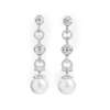 Each 14.7mm cultured pearl with diamond-set cap, to a brilliant and baguette-cut diamond circlet surmount, post fittings