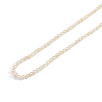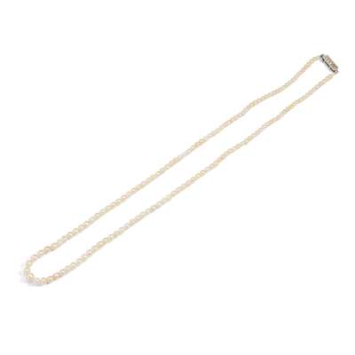 Composed of a single row of 5.10-2.85mm pearls, to a paste-set clasp, pearls untested