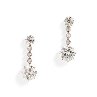 A pair of early 20th century diamond pendent earrings, circa 1910