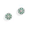 Each brilliant-cut diamond, within a radiating surround of calibré-cut emeralds and brilliant-cut diamonds, post fittings
