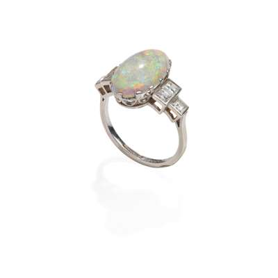 An Art Deco opal and diamond ring, circa 1930