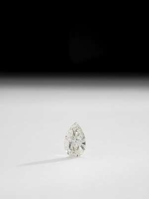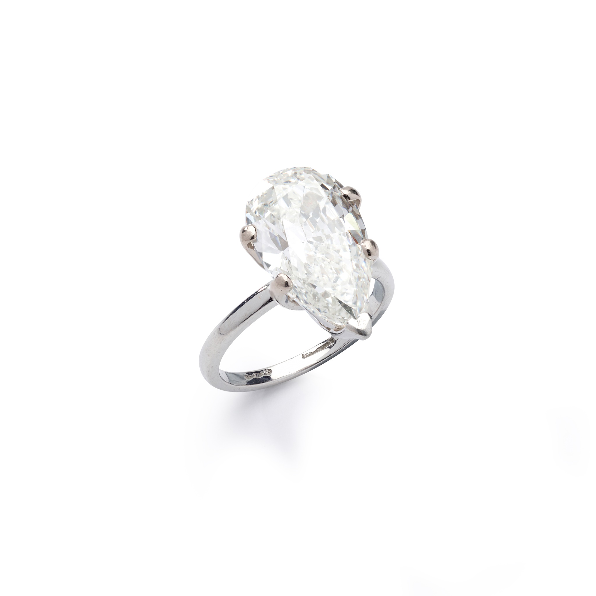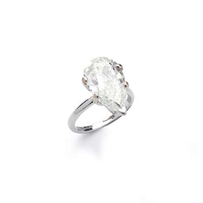 The pear-shaped diamond, weighing approximately 5.00 carats, claw-set to a plain band