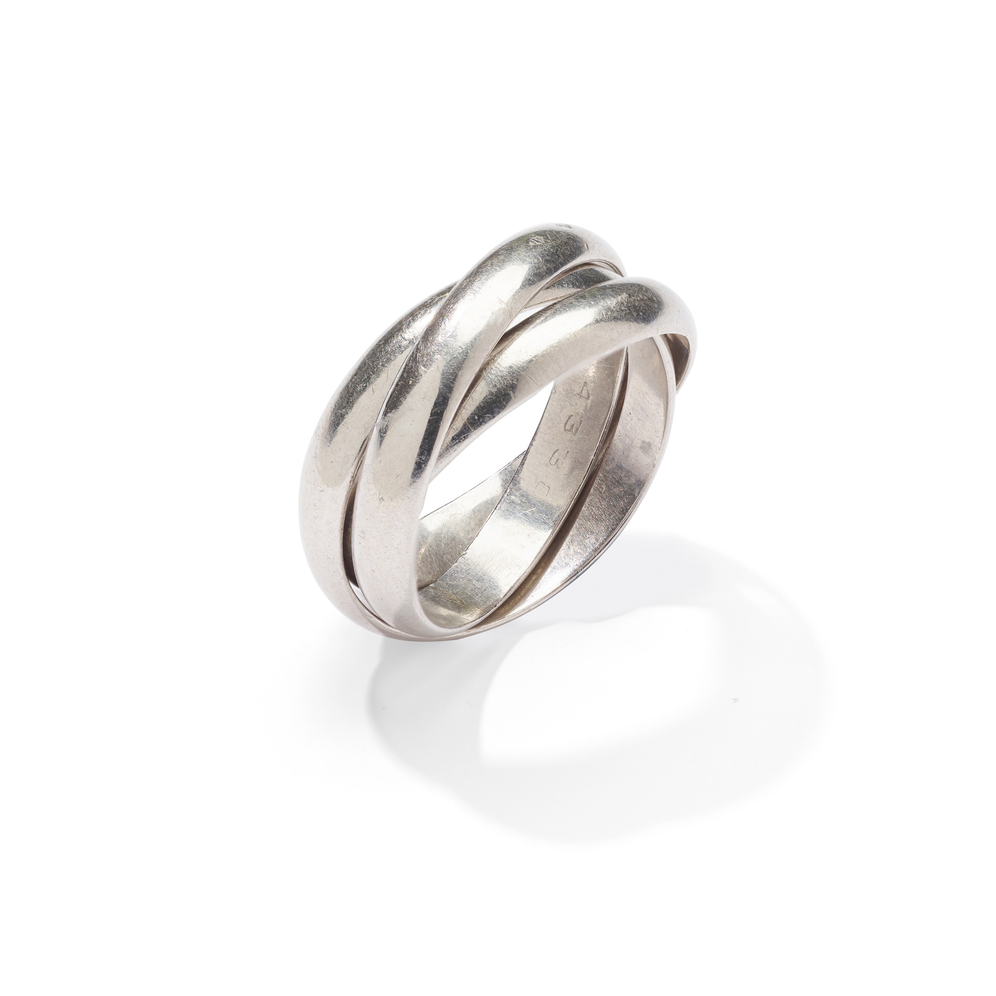 Composed of three interlocking bands, signed Cartier, numbered, maker's mark, French assay mark