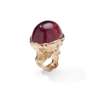The large oval cabochon pink tourmaline, within a brutalist mount of hammered and textured design, Italian marks