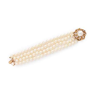 A cultured pearl and diamond bracelet, by Seaman Schepps