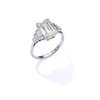 The cut-cornered rectangular-cut diamond, between baguette-cut diamond three-stone shoulders