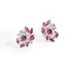 Each oval-cut ruby within a tiered openwork brilliant-cut diamond and marquise-cut ruby surround, post and clip fittings