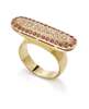 The elongated oval plaque pavé-set with brilliant-cut diamonds within a circular-cut ruby surround