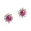 Each oval cabochon pink tourmaline within a pear-shaped rose-cut diamond surround, post fittings, UK hallmarks