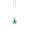 The carved jadeite jade within a brilliant-cut diamond surround and an openwork kite-shaped blue topaz frame, to a fine link chain