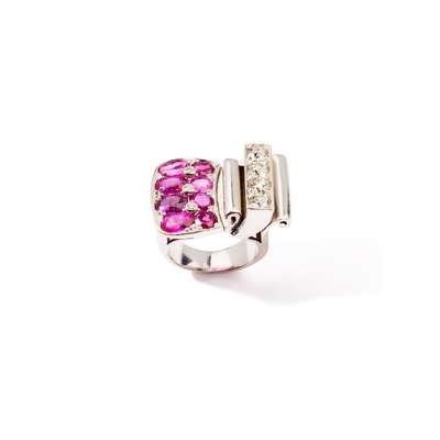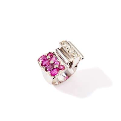 A mid 20th century ruby and diamond dress ring, circa 1940