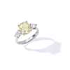 The cushion-shaped fancy yellow diamond, weighing 3.38 carats, between pear-shaped diamond shoulders