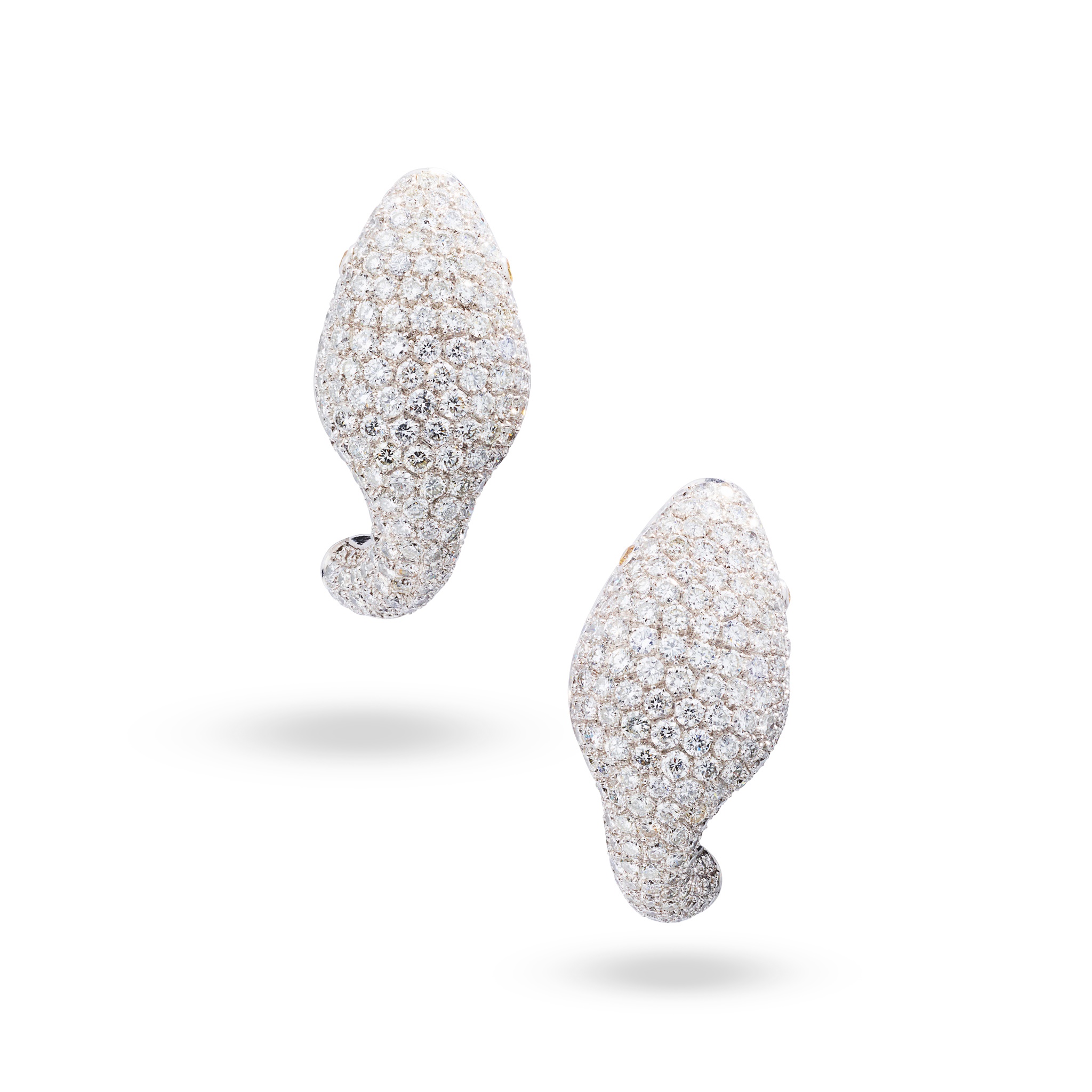 Each modelled as a snake's head, pavé-set throughout with brilliant-cut diamonds, with yellow diamond eyes, yellow diamonds untested for natural colour, articulated post and clip fittings