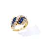 Of opposing scroll design, channel-set with two rows of tapered baguette-cut sapphires, between brilliant-cut diamond borders, one sapphire deficient, numbered