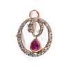 Designed as a circlet modelled as a coiled snake, set throughout with old mine and rose-cut diamonds and a ruby eye, suspending a pear-shaped ruby swing centre in a foiled close-back mount