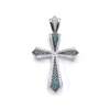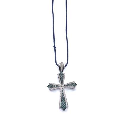 The Latin cross with tapered pointed arms, pavé-set with brilliant-cut diamonds and treated blue diamonds in a white and blackened 18ct gold mount, UK hallmark