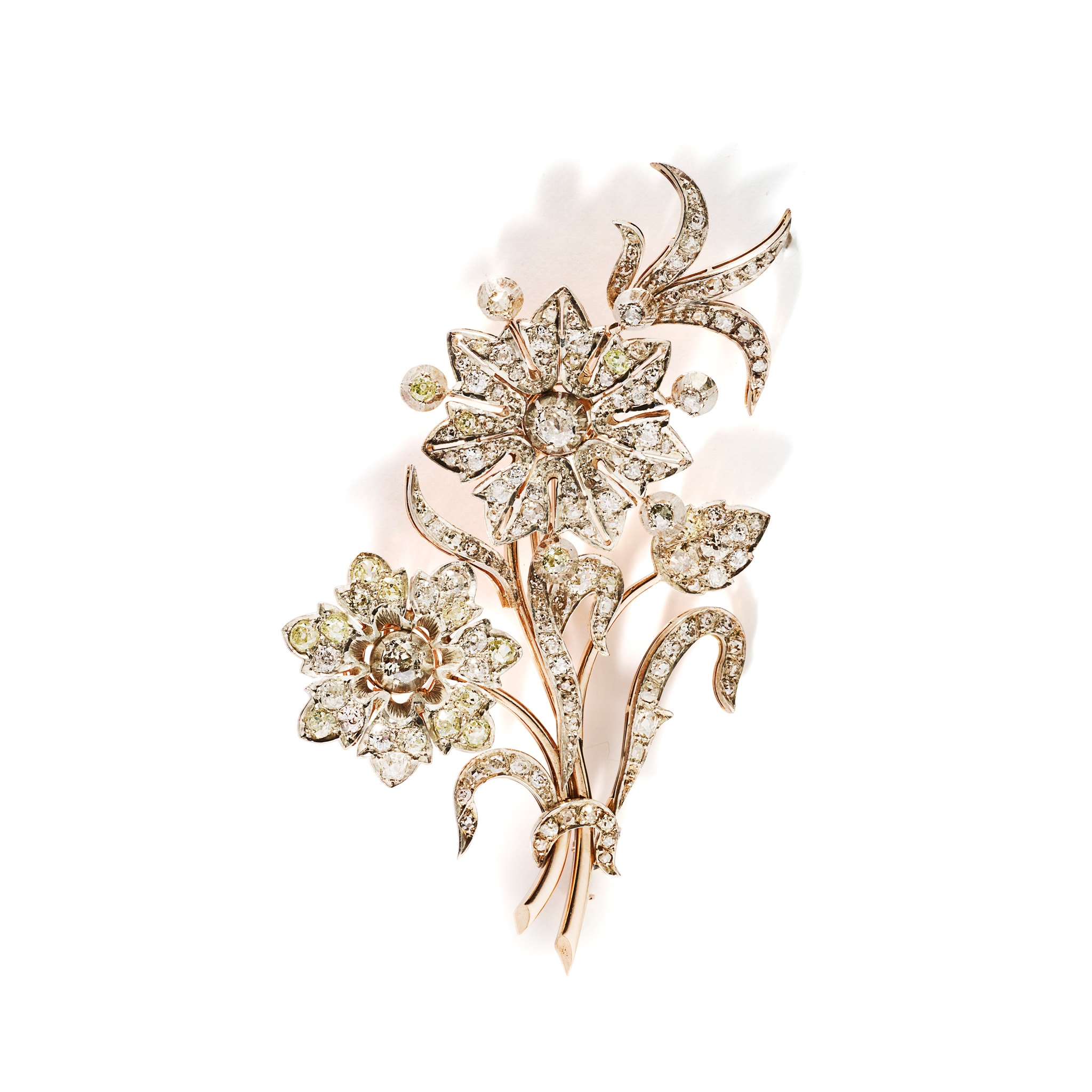 The floral spray with 'en tremblant' flowerheads, set throughout with old-cut diamonds
