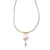 The 9ct gold snake-link chain suspending three graduated bi-coloured pendants, each collet-set with a brilliant-cut diamond, on a bar mount, UK hallmark