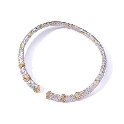 Of bi-coloured textured woven design, accented with pavé-set brilliant-cut diamond sections, signed Arimar