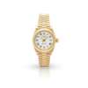 Oyster Perpetual Datejust model 6917, 1979 from serial number, originally purchased 1981, 18ct gold case, signed Rolex Perpetual calibre 2030 movement, round white 'Buckley' dial with Roman numerals in black, date aperture at 3, railroad outer seconds track in black, gold pencil hands with lume inserts, gold sweep centre seconds hand, gold fluted bezel, screw-down crown with coronet, on a Jubilee bracelet, with additional loose links, with signed Rolex 18ct gold concealed clasp, with European convention mark and with coronet and 8570 to the interior, in box (lacking insert to hold watch in place), with papers