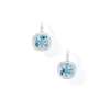 Each cushion-shaped blue topaz within a brilliant-cut diamond surround and surmount, mounted in 18ct white gold, hook fittings, signed Boodles, numbered, maker's mark, UK hallmark, maker's case