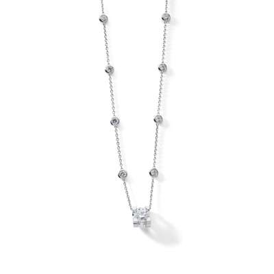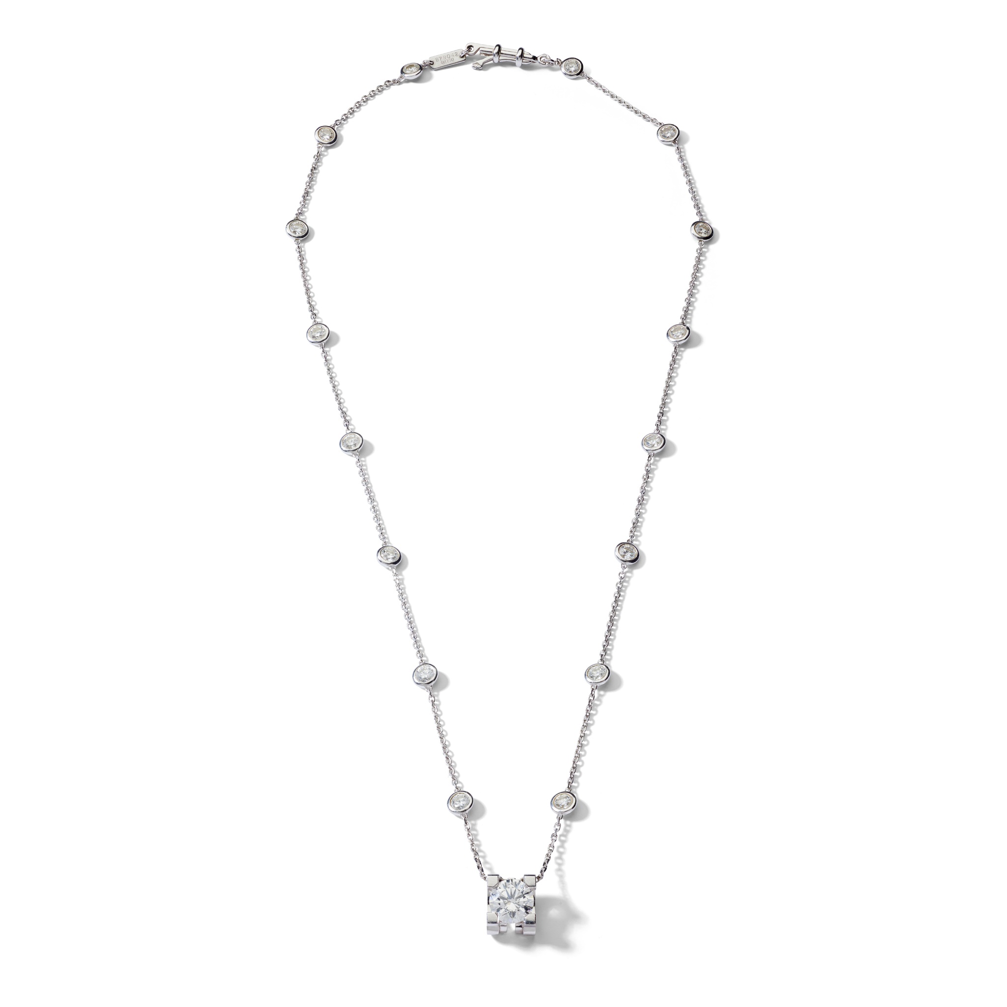 The brilliant-cut diamond in a four-claw mount, to a spectacle-set brilliant-cut diamond chain, signed Cartier, numbered, maker's case and certificate