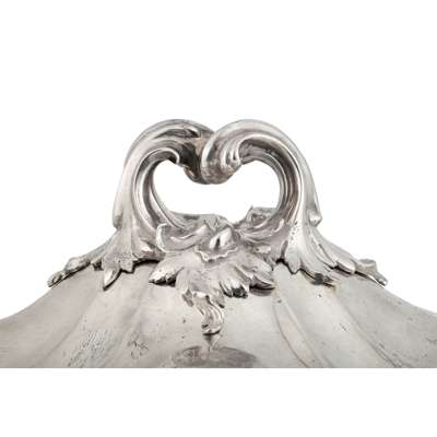By the time of the production of this soup tureen the firm had settled at Angel Street, St. Martin’s-le-Grand, right in the City of London off Cheapside. With members of staff skilled at casting, engraving and forging, the factory would have been a hive of activity.