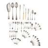 to include a George III strainer spoon, TN, London 1787, Old English pattern, engraved crest for Percy family; a fish slice, William Eley, William Fearn & William Chawner, London 1812, of Fiddle and Thread pattern, crest engraved to terminal, a basting spoon, William Eley & William Fearn, London 1806, of Old English Threaded pattern, a double-ended marrow scoop, John Langlands II, Newcastle; together with various other flatware including a collection of condiment and teaspoons