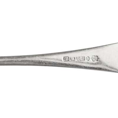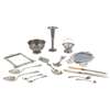 to include, a Dutch 19th-Century pedestal bowl, with import marks, the body with various panels of countryside scenes; a Dutch 19th-Century large marriage spoon, heavy cast panel finial, cast stem, large fig shaped bowl, indistinct marks and import marks; two Edwardian photograph frames, one heart-shaped, one rectangular, a/f; a small pierced swing-handled basket, Birmingham 1899; a spill vase, flatware including plated pieces, etc.