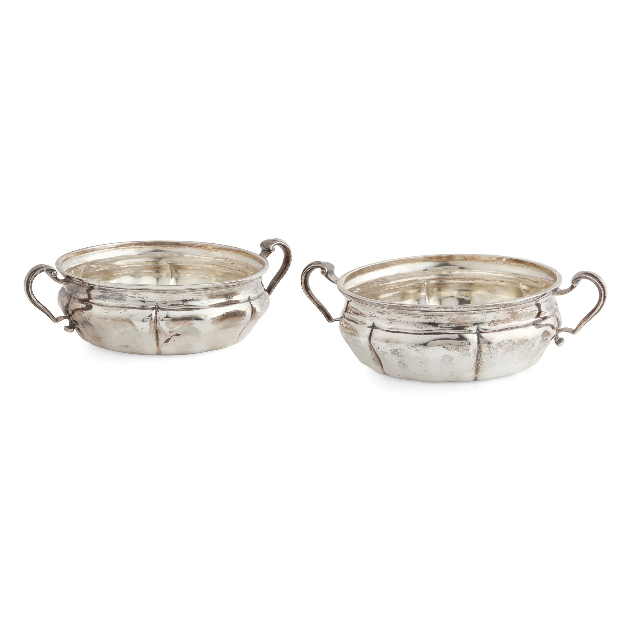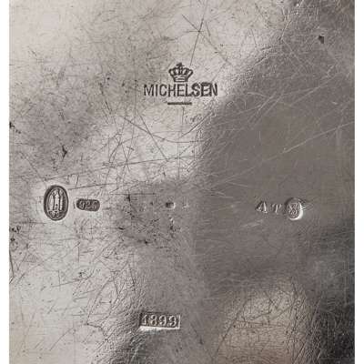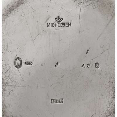 Anton Michelsen, stamped, AT, 1900, 925 with maker's mark, each of circular form with bulbous panels, the handles of S-scroll form