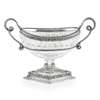 the cut crystal bowl of navette outline, with onset beaded and embossed Classical figure border, the handles each modelled as an intertwined serpent, to a diamond-shaped foot with similar decoration