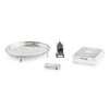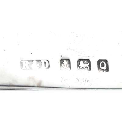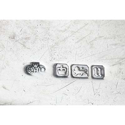 William Hutton & Sons, Sheffield 1912, of oval outline, raised pierced border with an engraved vacant oval cartouche to centre, raised on four bracket feet; together with a Victorian double ended vesta case, engine turned decoration; a modern cigarette box, R&D, Birmingham 1940, with engine turned decoration to the hinged lid; and a model of the coronation throne, Cornelius Desormeaux Saunders & James Francis Hollings (Frank) Shepherd, London 1902