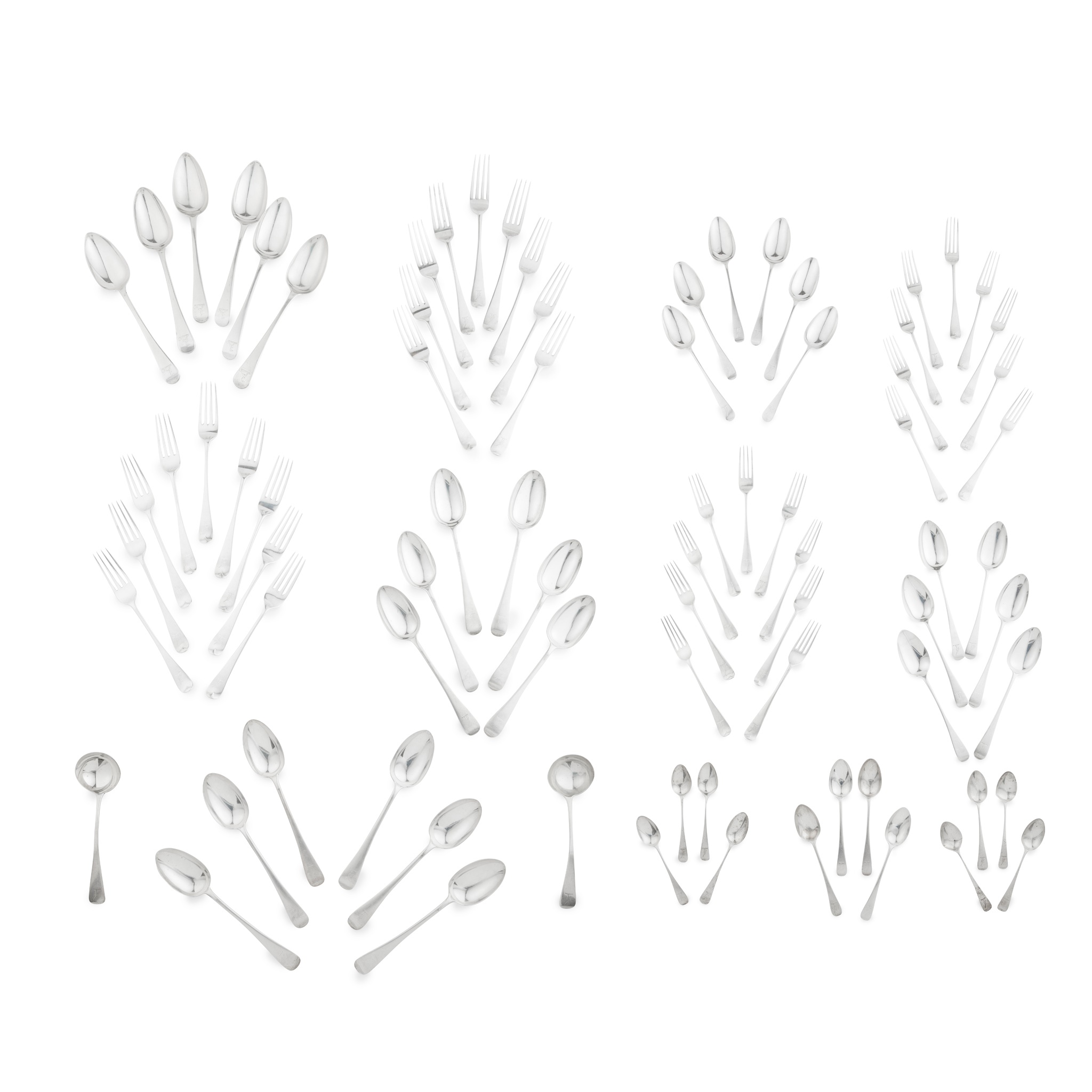 A matched suite of Old English pattern Scottish flatware