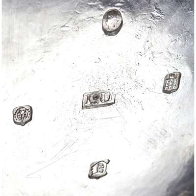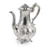 Leonard Urquhart, Edinburgh 1845, of baluster form, the lower panelled body with embossed and chased scroll panels with foliate decoration, the S-scroll handle with ivory insulators and spot similarly decoration, the hinged lid with a floral finial, raised on a cast bracket foot