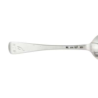 James Hewitt, Edinburgh 1774, of Hanoverian pattern, engraved italic initials to reverse of terminal; together with a Victorian cased christening set, Hilliard & Thomson, Birmingham 1891, comprising spoon and fork, each of Onslow variant pattern, retailed by Brook & Sons of Edinburgh
