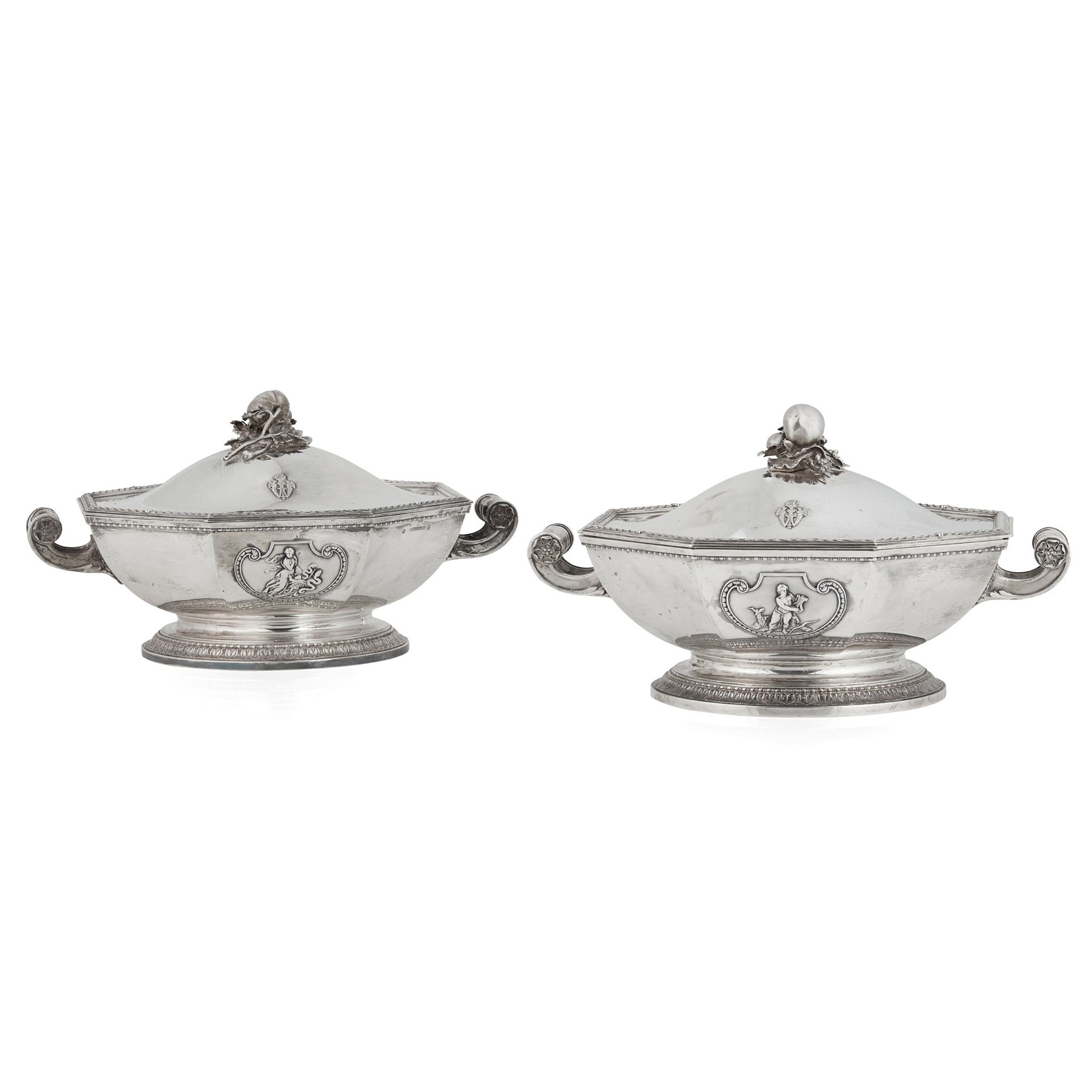 A pair of late 19th-Century Austrian twin handled vegetable tureens, liners and covers
