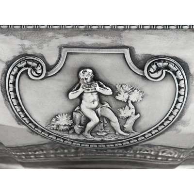 Klinkosch were key participants at the Viennese World Exhibition of 1873 and the Parisian Exposition Universelle in 1878 where the firm won both silver and gold medals under the supervision of Joseph Carl. It is clear to see his attention to detail and stylistic designs were a driving force to their success. Intricate details such as pumpkin and mushroom finials seen in these vegetable tureens exemplify this beautifully. It is interesting to see how the silversmith and perhaps the client went to such lengths to tie in the utility of the piece to its design. Each panel is unique in its depiction of a Classical hero or allegory, another example of the care and thought taken in producing this piece.