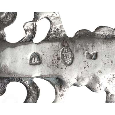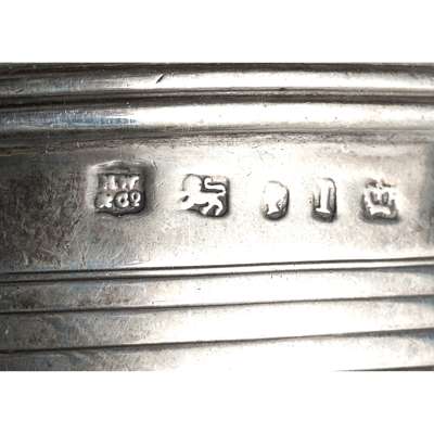 John Aldwinckle & Thomas Slater, London 1887, of lobed circular outline, chased floral decoration throughout, raised on three shell feet; together with a modern shell butter dish, Birmingham with engraved floral decoration, raised on three scroll feet; a pair of Georgian wine coasters with pierced sides; a George IV ponce pot and a Victorian mug; together with a Dutch tea strainer and a Dutch table box with engraved initials to the hinged lid
