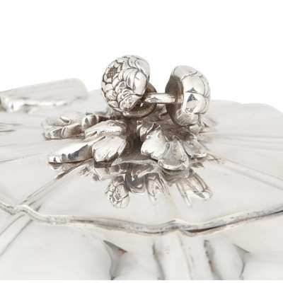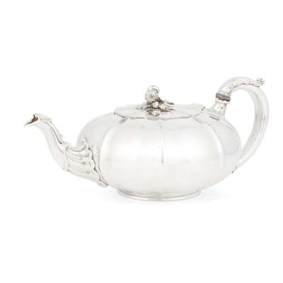 Paul Storr, retailed by Storr & Mortimer, London 1832, of squat lobed melon form, acanthus leaf clasped C-scroll handle, the hinged lid with budding finial