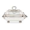 In the wake of George III’s failing health, he was deemed unfit to rule, and thus the Prince of Wales succeeded as Prince Regent in 1811 until his father’s death in 1820. This period offered new beginnings with more influences from the continent and the French Empire style filtering through. The swags of applied fruiting vines, foliate motifs and Bacchus masks were all motifs which were a clear nod to the emerging Regency style, the acanthus handle of the tureen exemplifies the care and detail during this period.