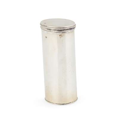 Thomas Phipps & Edward Robinson, London 1804, of cylindrical form, the hinged lid with pull down side, to reveal the grater