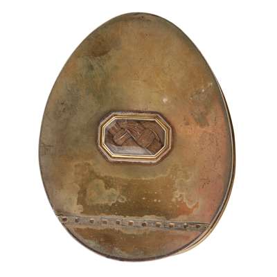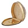Thomas Phipps & Edward Robinson, London 1794, the polished cowrie shell mounted with a plain silver-gilt rim, the hinged cover inset with glazed panel enclosing a locket of hair with the letters MB/ LAJ engraved to the underside