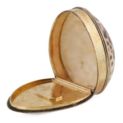 A George III silver-gilt mounted cowrie shell snuff box