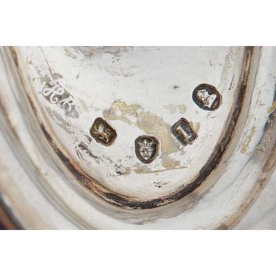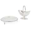 Hester Bateman, London 1786, of oval outline with threaded border, raised on a short stem and oval foot; together with a card tray, Peter & Anne Bateman, London 1794, of circular outline with a beaded border, raised on three fluted bracket feet