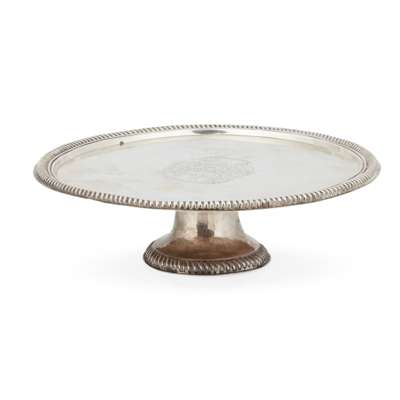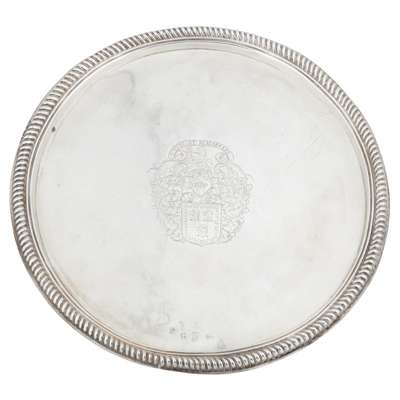 Samuel Hood, London 1699, of circular outline, with a gadrooned border, engraved to the centre the armorials for Scott of Benholm, raised on a flared stem with a gadrooned border