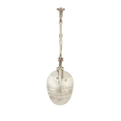 Holse Seeips Swerms, Harlingem, c.1715, the cast naturalistic scroll and stylised branch stem with scroll join to ovoid bowl, with slender rat tail, marked to shoulder